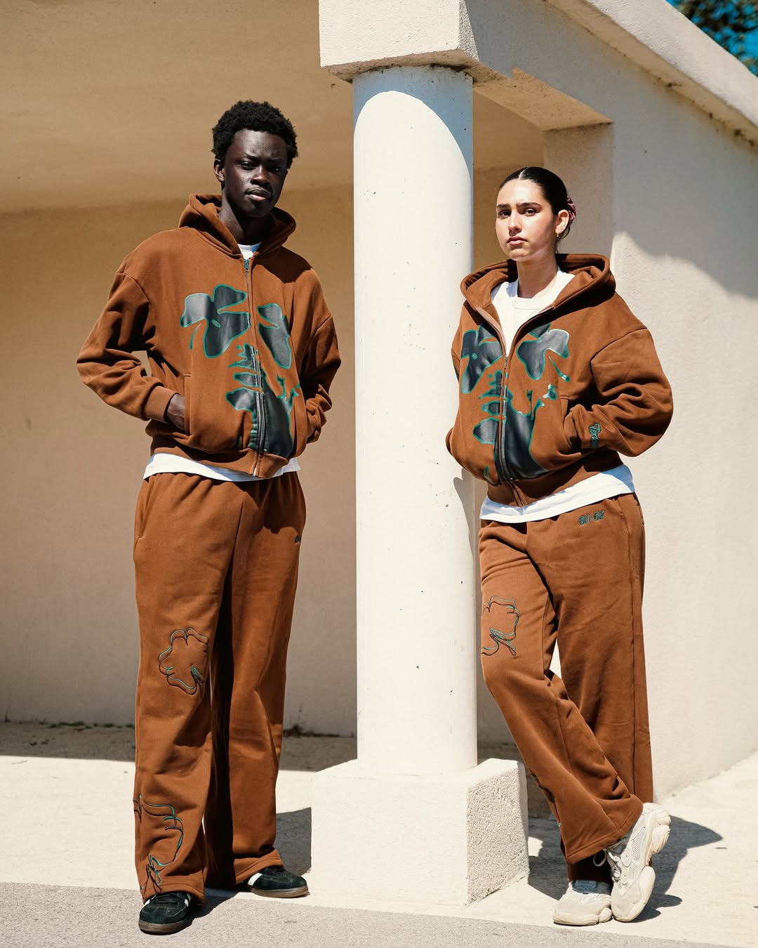 Chaque fiche produit détaille la composition exacte. On travaille principalement le coton épais, et le coton peigné pour les tees. Tout est pensé pour durer.